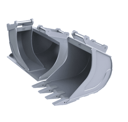 Our tiltrotator bucket kits comprise of a narrow/cable bucket, digging bucket and grading bucket. Tiltrotator grading buckets are usually tapered to help with shaping edges, etc.
