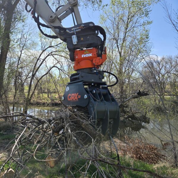 Depending on the control system options – the NOX tiltrotator can perform many other tasks than simple digging and grading. The extra functions on the tiltrotator allows for hydraulic attachments to run through the NOX. For example, grabs/grapples, compactor plates and hydraulic pallet forks.